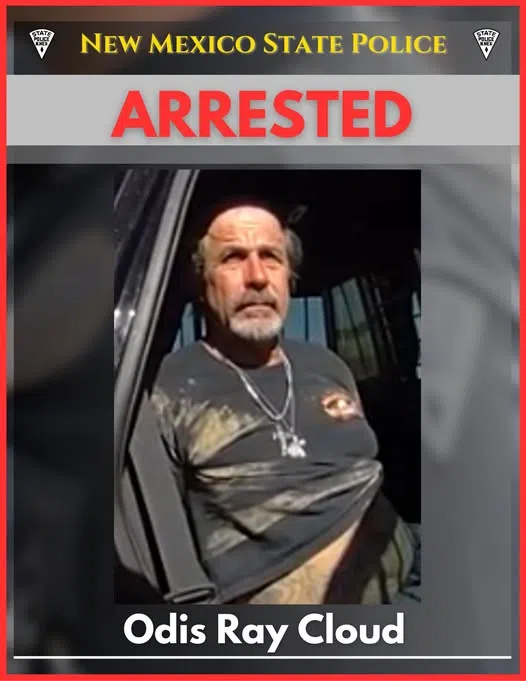Albuquerque, NM (KKOB) — Around 11:30 a.m. on Sunday, New Mexico State Police responded to a 911 call intercepted through regional dispatch. A woman reported her ex-boyfriend had pulled a knife and was threatening to kill her. Officers tracked the vehicle traveling north on U.S. 70 and stopped it on a nearby dirt road. 59-year-old Odis Ray Cloud was arrested without incident. The victim was found safe. Investigators say Cloud tried to manipulate her into lying. He’s now charged with kidnapping, aggravated battery, and other offenses.